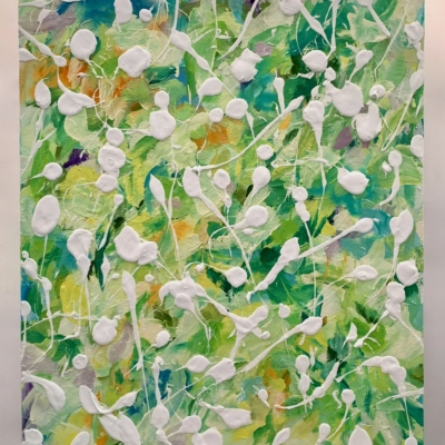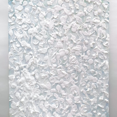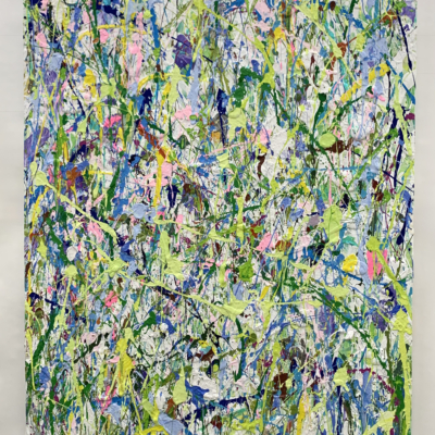 Cathy Choi finds inspiration from the physical and metaphysical qualities of water, painting with pigmented resin. The phenomenon and sensation of color is what ultimately drives her work. Her intention is not a literal representation of natural elements. Instead, she uses these references to point toward spiritual notions of purity, cleansing, and beauty.