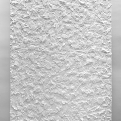 Similar to a hologram, the illusion of three dimensional space is not clearly defined, instead it shifts as a myriad of volumes, distorted by viewing the painting from different angles. This “inner reality” changes as the viewer moves around the work.