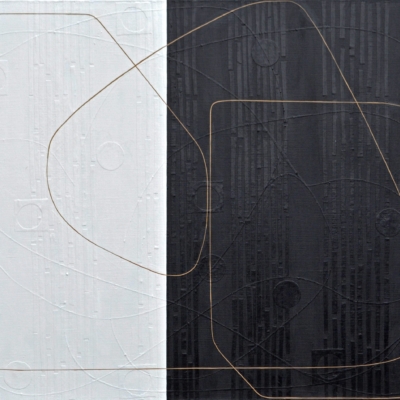 Maura Segal’s abstract works conjure a delicate simplicity. Blocks of color languidly splay behind thin meandering lines and freeform fluid curves. Yet upon closer investigation, the artist’s focal craftsmanship is revealed by the foundational background textures, intricately hand-cut patterns and strips of paper laid below and atop paint. This concealment of an overall complexity in Segal’s detailed approach is inspired by her love of modern architecture and minimalism; both of which inform her work constructively and aesthetically. Segal has a B.F.A. in Graphic Design from California State University, Northridge. Her work has exhibited throughout the U.S. and is in numerous public and private collections. Segal resides and works in Venice, California.