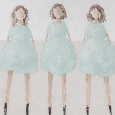 René Romero Schuler’s expressionistic paintings depict delicate female figures that she paints using a dry-brushed, minimalist hand, leaving her subjects mostly featureless but nonetheless imbued with emotional interiority. While some of her subjects appear lost and isolated, other works depict couples holding hands in private moments of bliss.